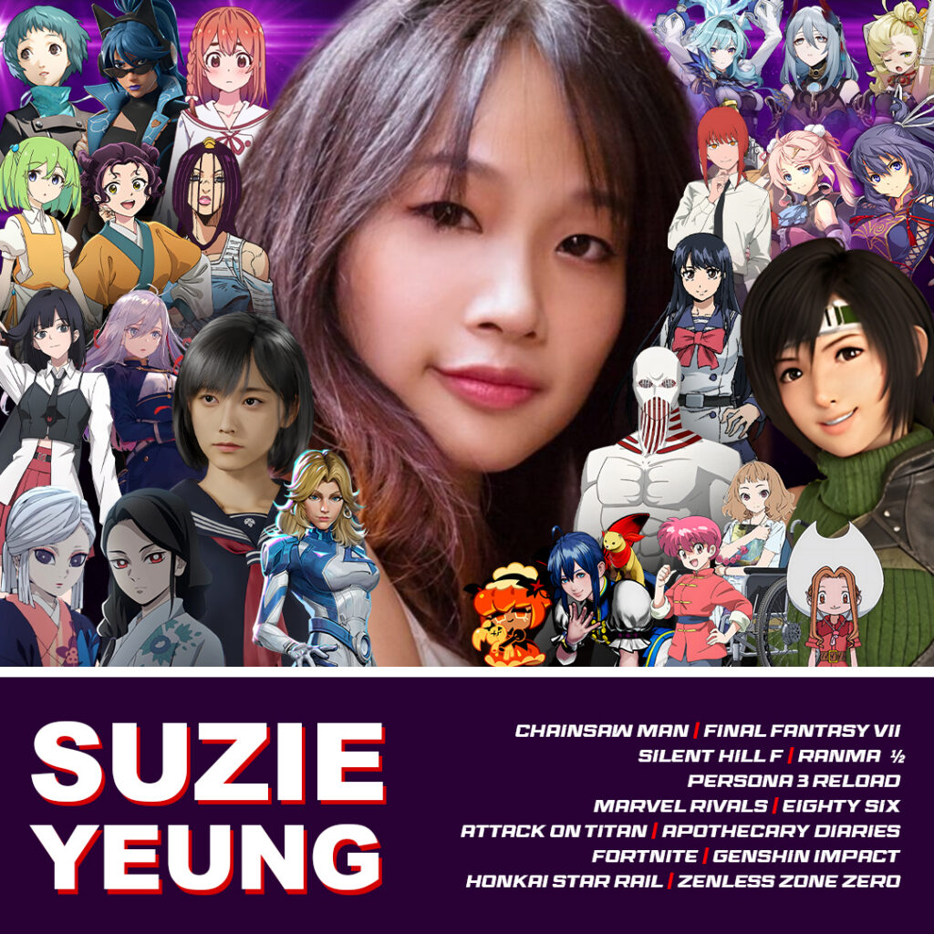 Suzie YeungSuzie Yeung is an Asian American actress who voices in various anime, video games, and cartoons.